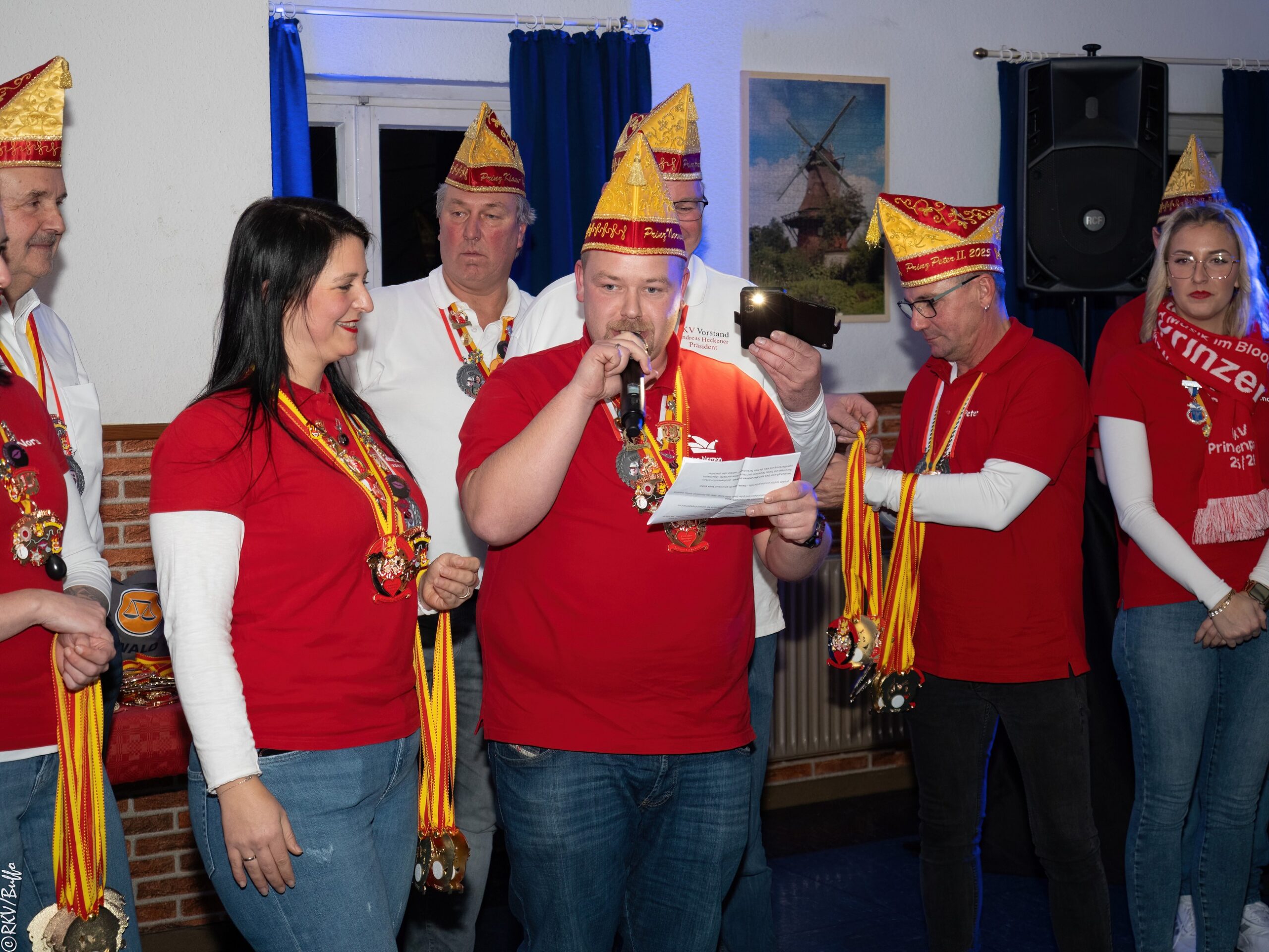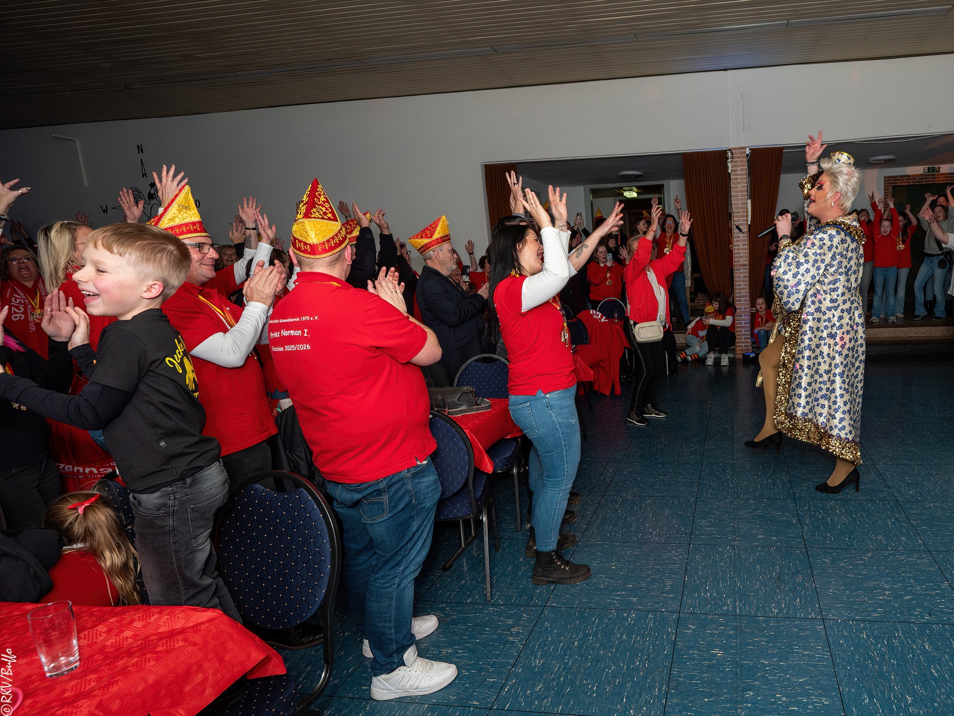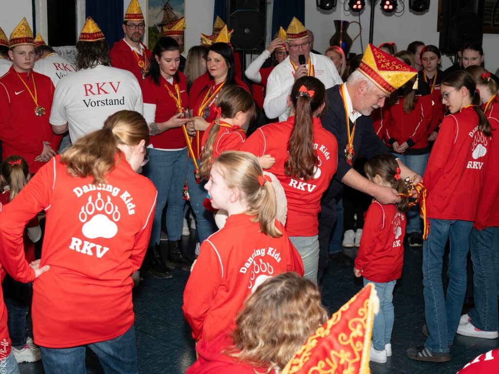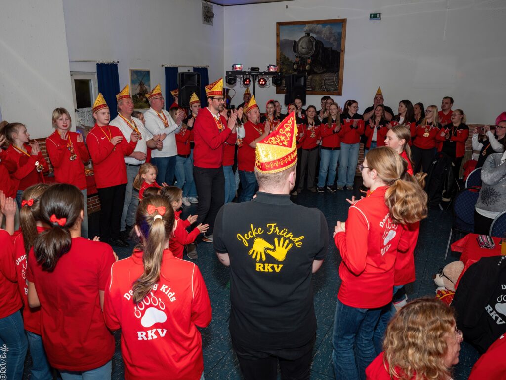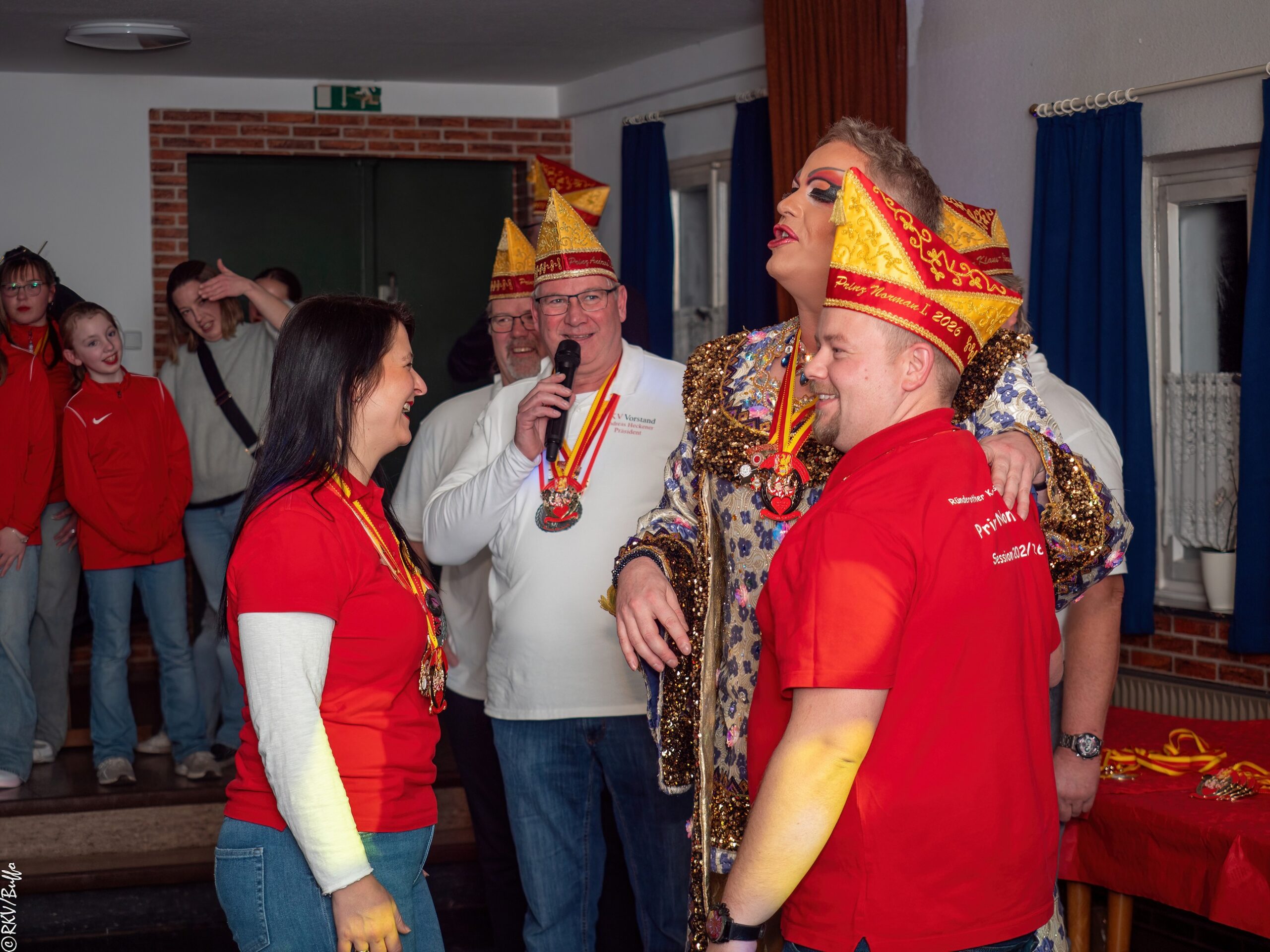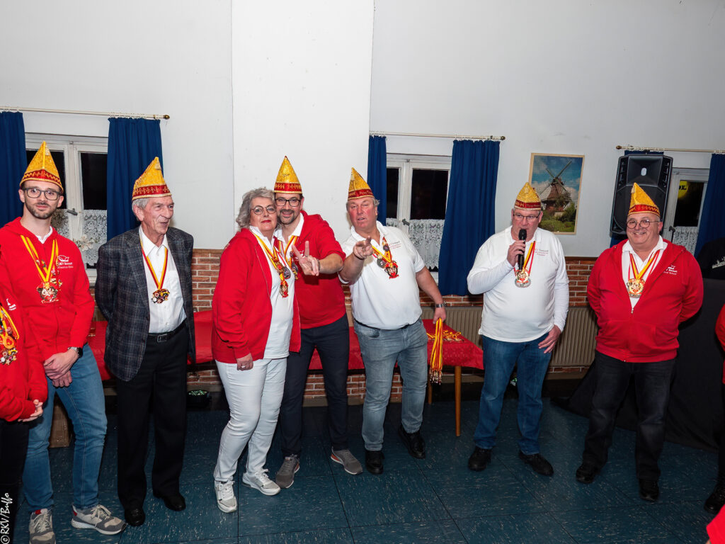 Ein besonderes Highlight war dann der Überraschungsauftritt von Ken Reise alias Julie Voyage. Julie Voyage präsentierte weihnachtliche Songs wie „In der Helmlackiererei“, lud mit kölschen Klassikern zum gemeinsamen Schunkeln ein und sorgte mit frechen Sprüchen und Pointen für Heiterkeit im Saal. Richtig laut wurde es dann, als Julie Voyage den Song „Komm mit mir nach Ründeroth“ sang. Mit dem neu aufgelegten Klassiker ist Julie Voyage sogar auf dem aktuellen „Karneval der Stars“-Sampler vertreten und damit Ründeroth’s berühmteste Botschafterin. Als langjähriges RKV-Mitglied wurde Ken Reise natürlich ebenfalls der aktuelle Sessionsorden vom Prinzenpaar verliehen.