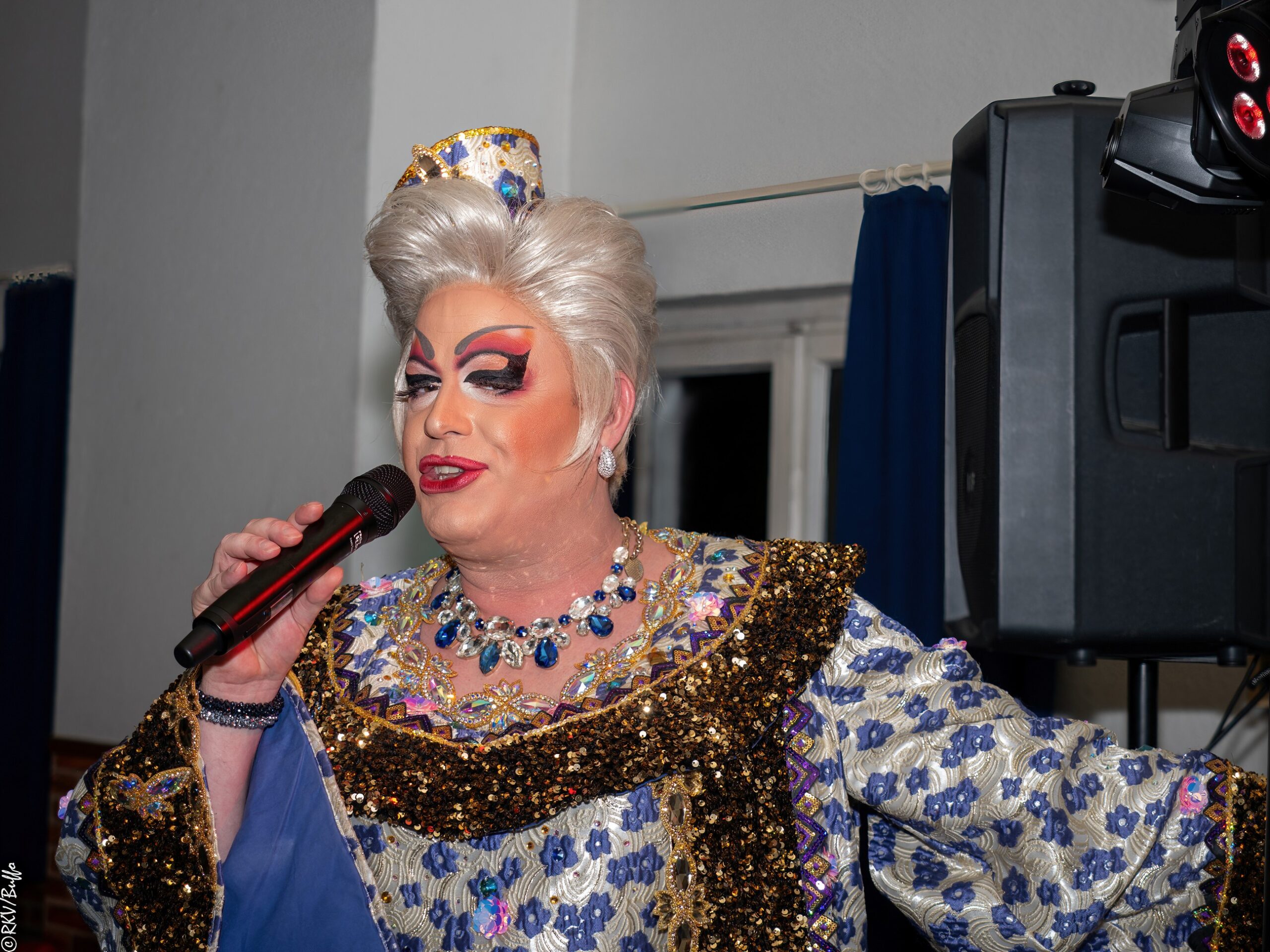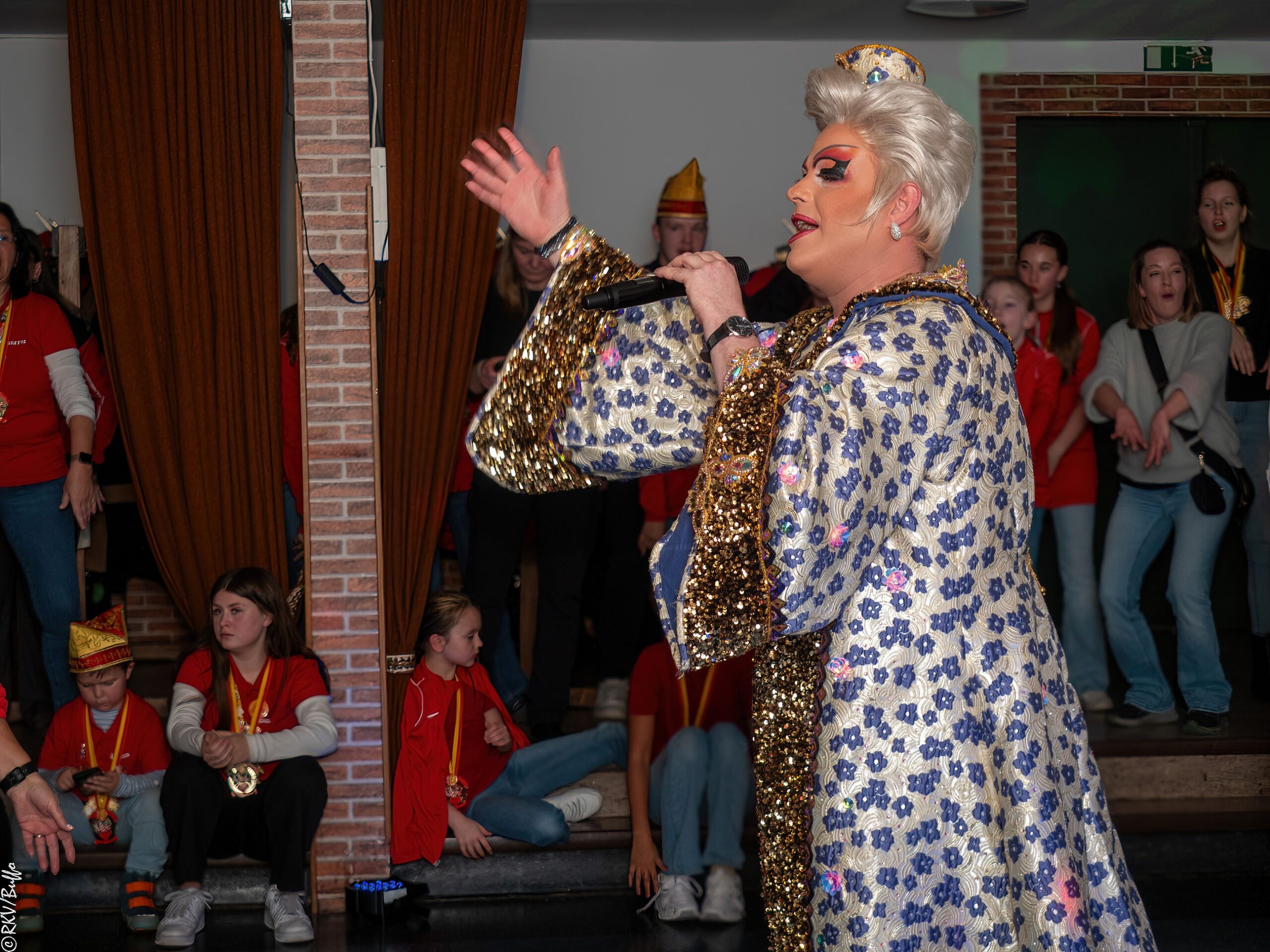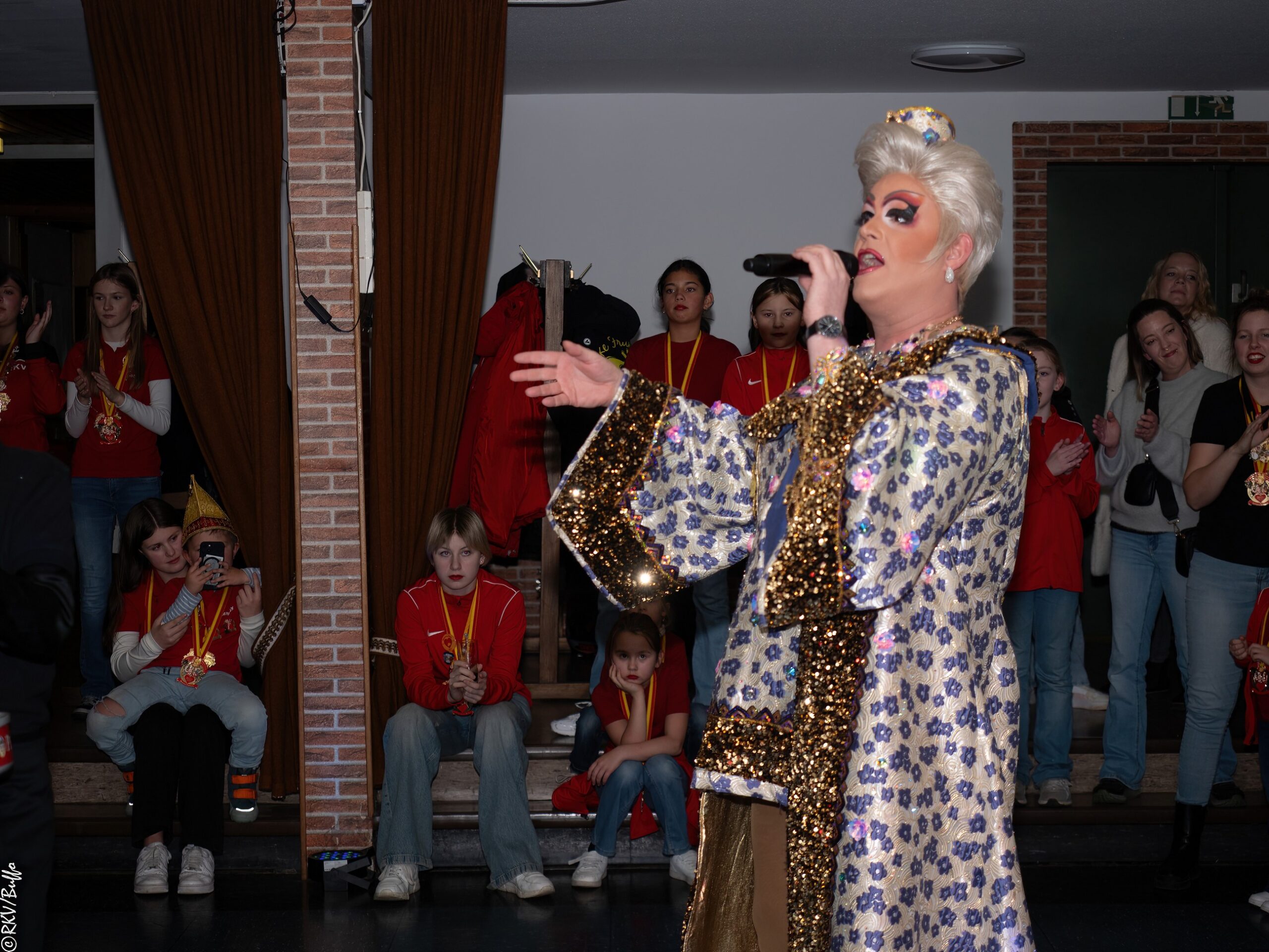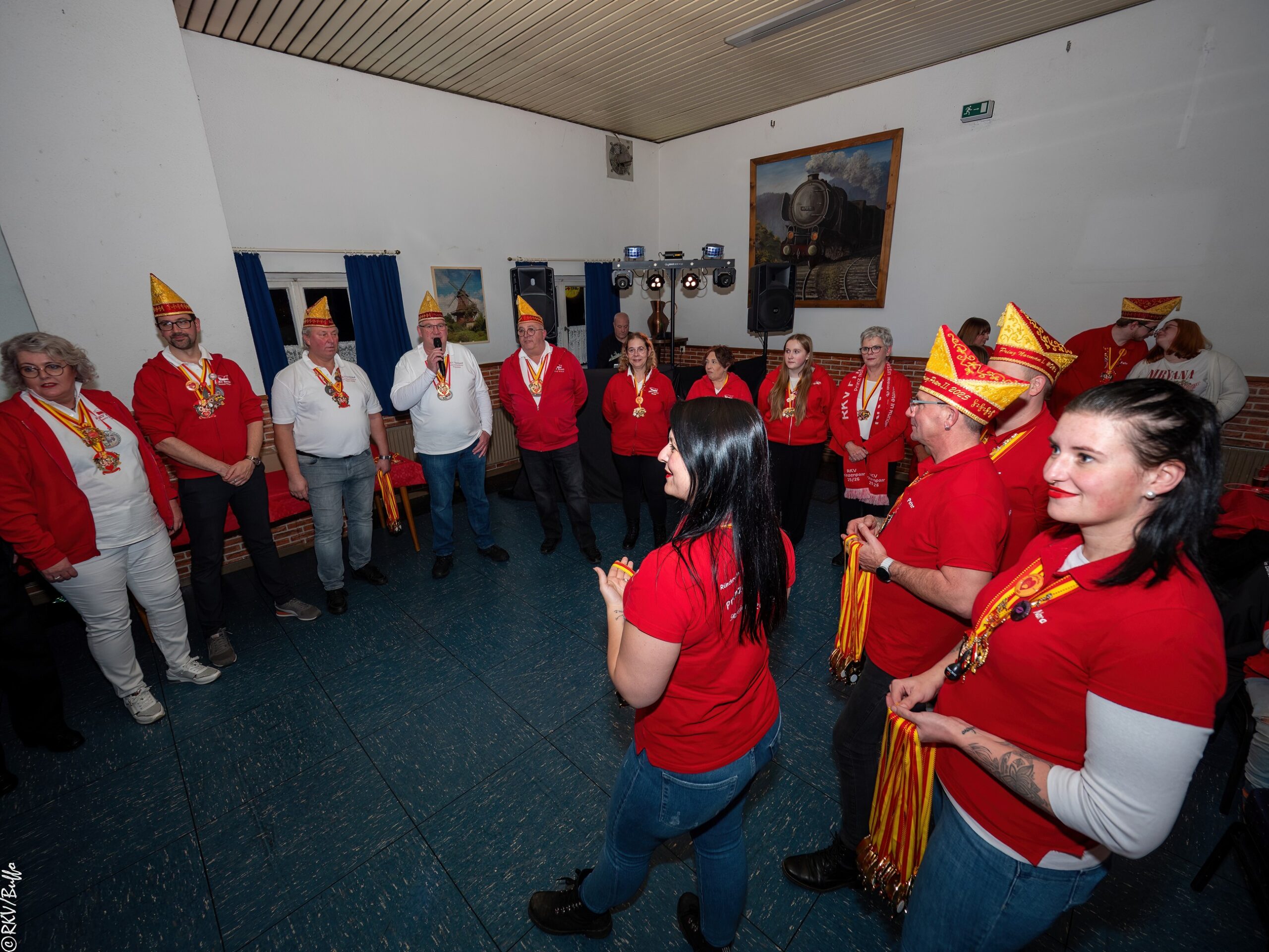 Ein besonderes Highlight war dann der Überraschungsauftritt von Ken Reise alias Julie Voyage. Julie Voyage präsentierte weihnachtliche Songs wie „In der Helmlackiererei“, lud mit kölschen Klassikern zum gemeinsamen Schunkeln ein und sorgte mit frechen Sprüchen und Pointen für Heiterkeit im Saal. Richtig laut wurde es dann, als Julie Voyage den Song „Komm mit mir nach Ründeroth“ sang. Mit dem neu aufgelegten Klassiker ist Julie Voyage sogar auf dem aktuellen „Karneval der Stars“-Sampler vertreten und damit Ründeroth’s berühmteste Botschafterin. Als langjähriges RKV-Mitglied wurde Ken Reise natürlich ebenfalls der aktuelle Sessionsorden vom Prinzenpaar verliehen.